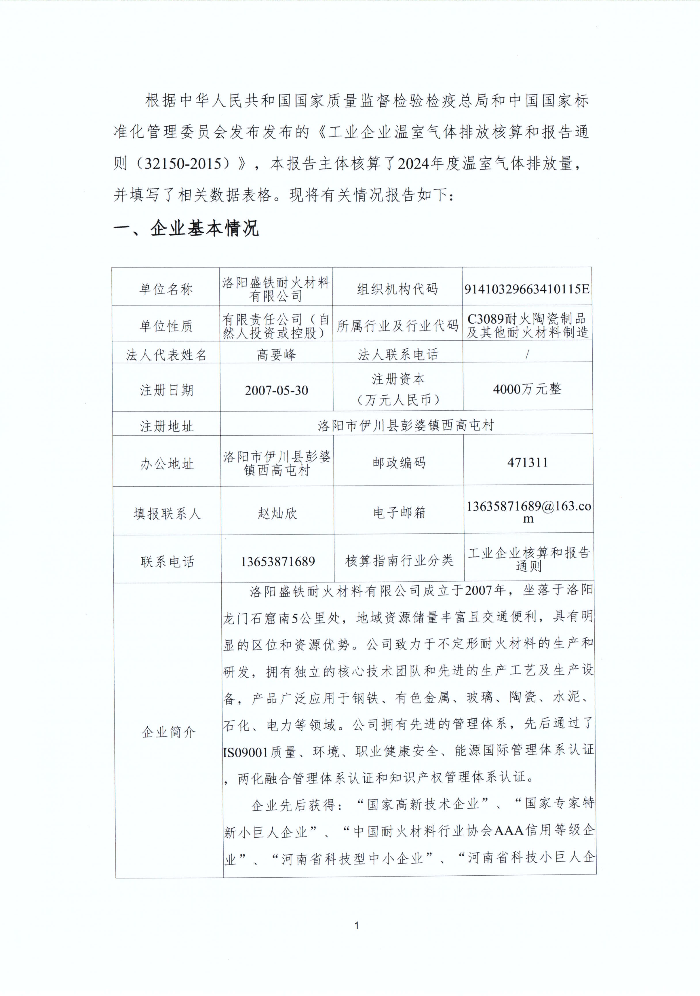 洛阳盛铁耐火材料有限公司-碳排放报告